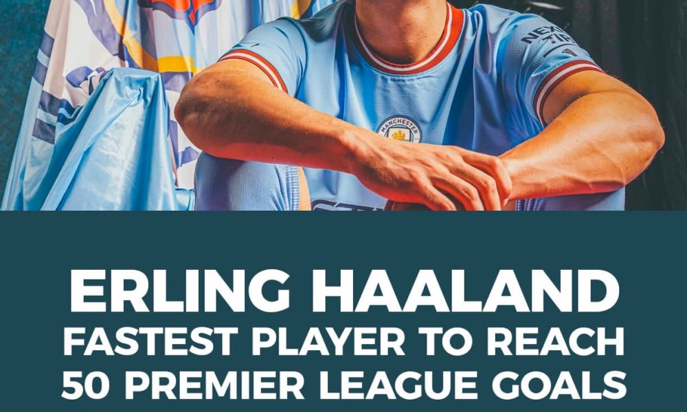 Manchester City striker Erling Haaland has become the fastest player in English Premier League history to reach 50 goals, beating Manchester United striker Andrew Cole’s previous record.